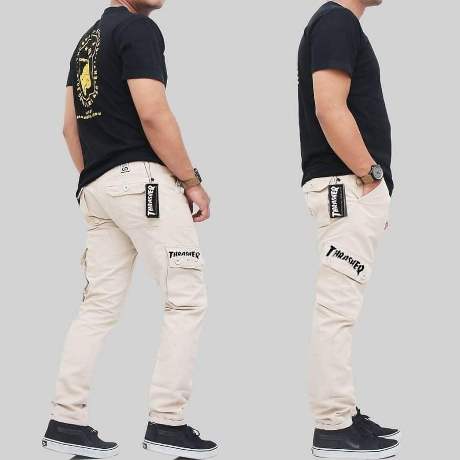 (Gratis Ongkir) Celana Cargo Panjang Thrasher Bahan Katun Drill Tebal Nyaman Dipakai Size 28-38