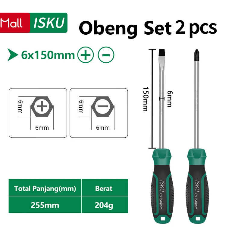 ISKU Obeng Set 2PCS 6*150mm (Plus dan Minus) Screwdriver Set Arah Bolak Balik Plus-Min Minus Chrome