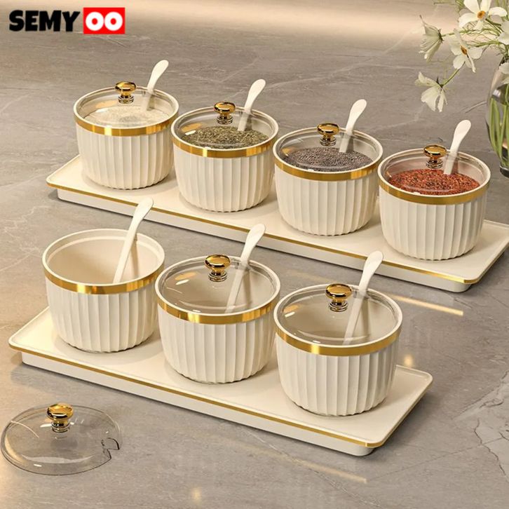 Tempat Bumbu Dapur Set SEMYOO Tempat Bumbu set estetic 3 4 in 1 Tempat Bumbu Dapur Set Sendok 4IN1 Wadah Bumbu Aesthetic