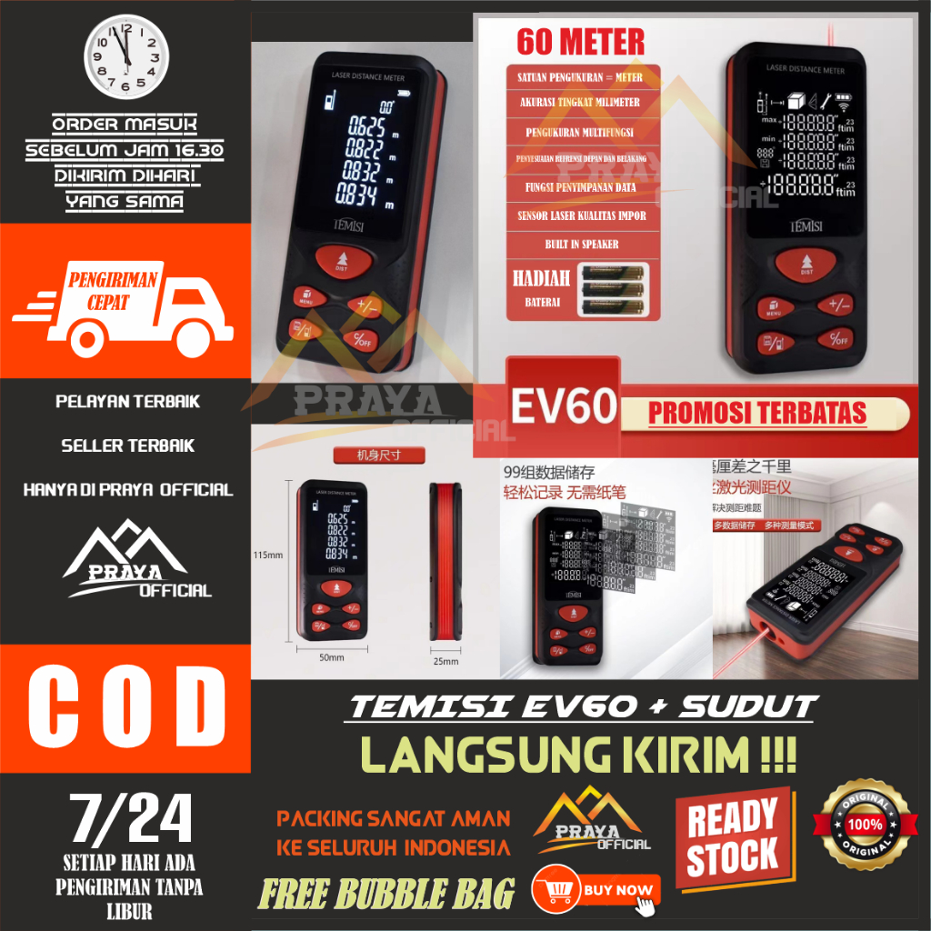 PRAYATECH METERAN LASER DIGITAL 40M 50M 60M 70M 80M 100M 120M 150M LASER DISTANCE METER UKUR JARAK