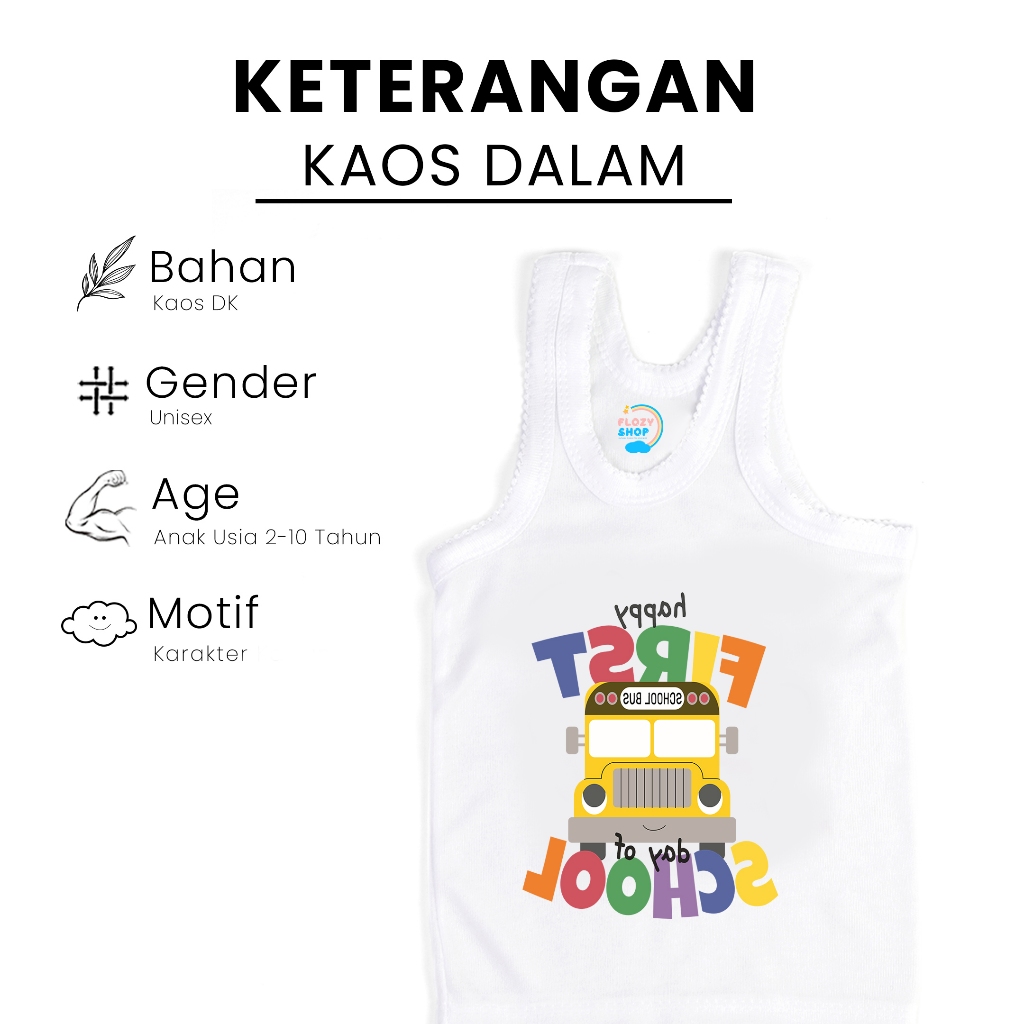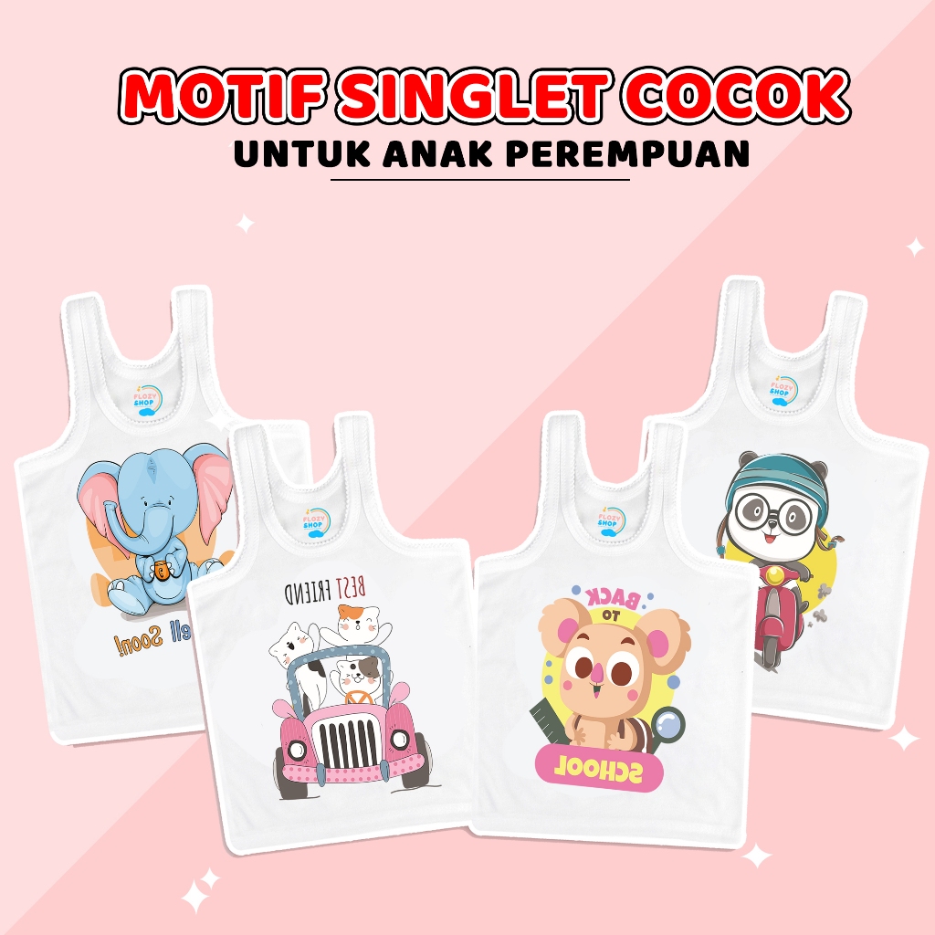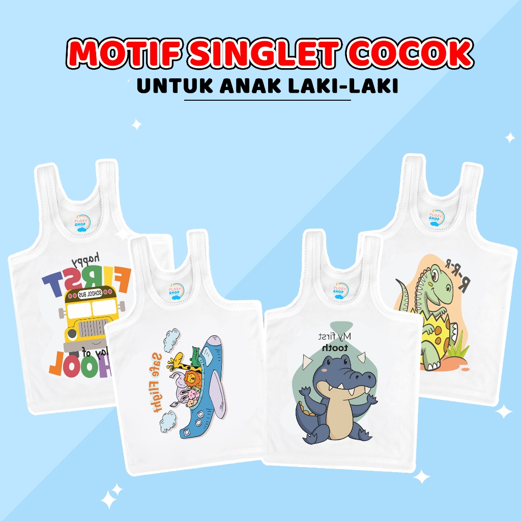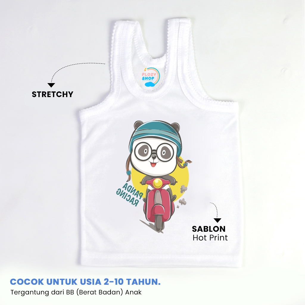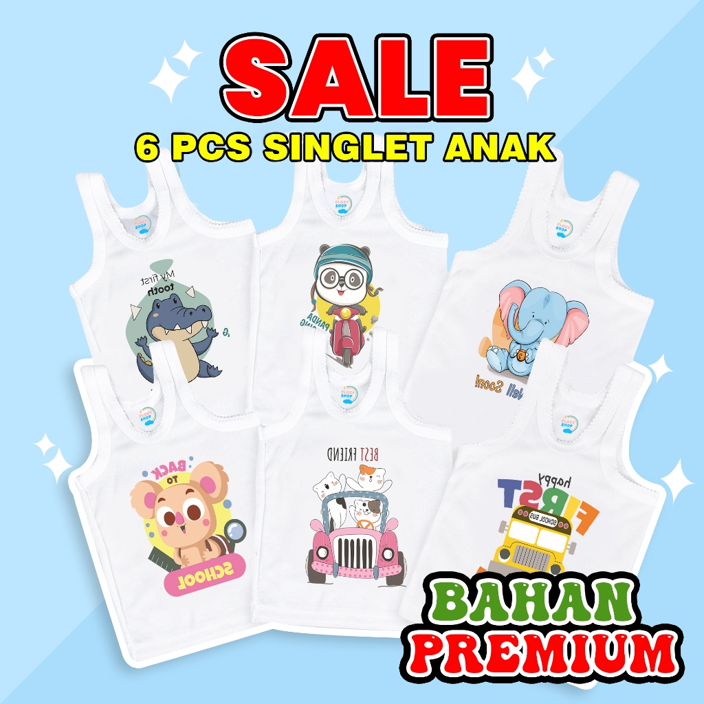 (FLASH SALE)6 PCS Singlet FLOZY SHOP Kaos Dalam Anak Karakter Binatang Sablon Besar Tahun Laki Laki Dan Perempuan Bahan