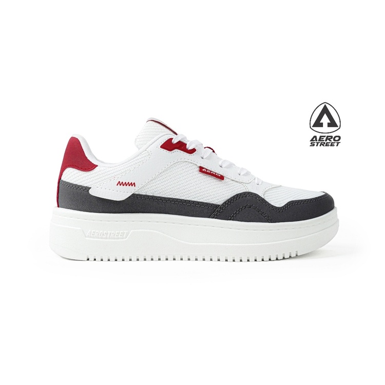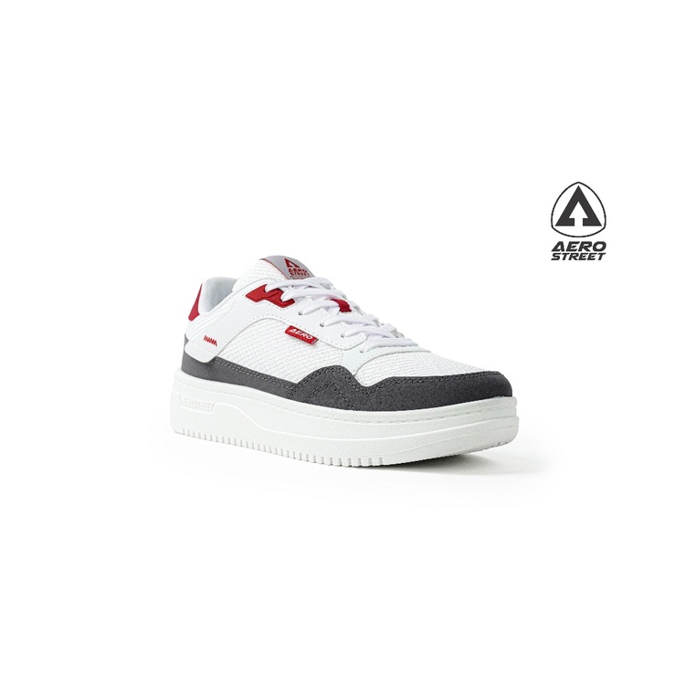 Promo Sepatu Sneakers Casual Pria Aerostreet Maximo Putih Abu Tua Merah - Sepatu Santai Yang Bisa Dipakai Sehari-hari