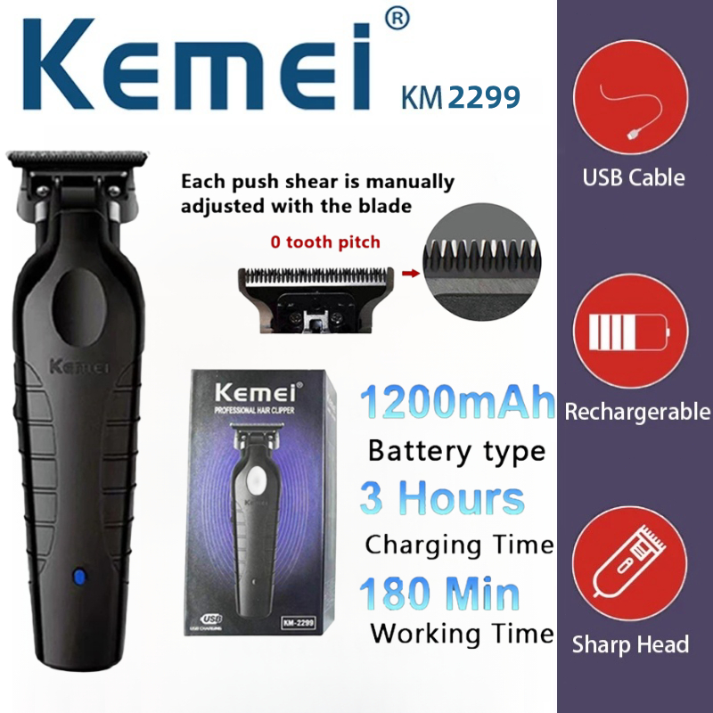 2025 Kemei-2299 Gunting Rambut Pemangkas Rambut Elektrik Tanpa Kabel Isi Ulang USB Dapat Diisi Ulang