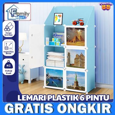 LEMARI PAKAIAN ANAK LEMARI PLASTIK LEMARI PAKAIAN WARDROBE 6 PINTU 2 RAK LEMARI BONGKAR PASANG FURNITURE
