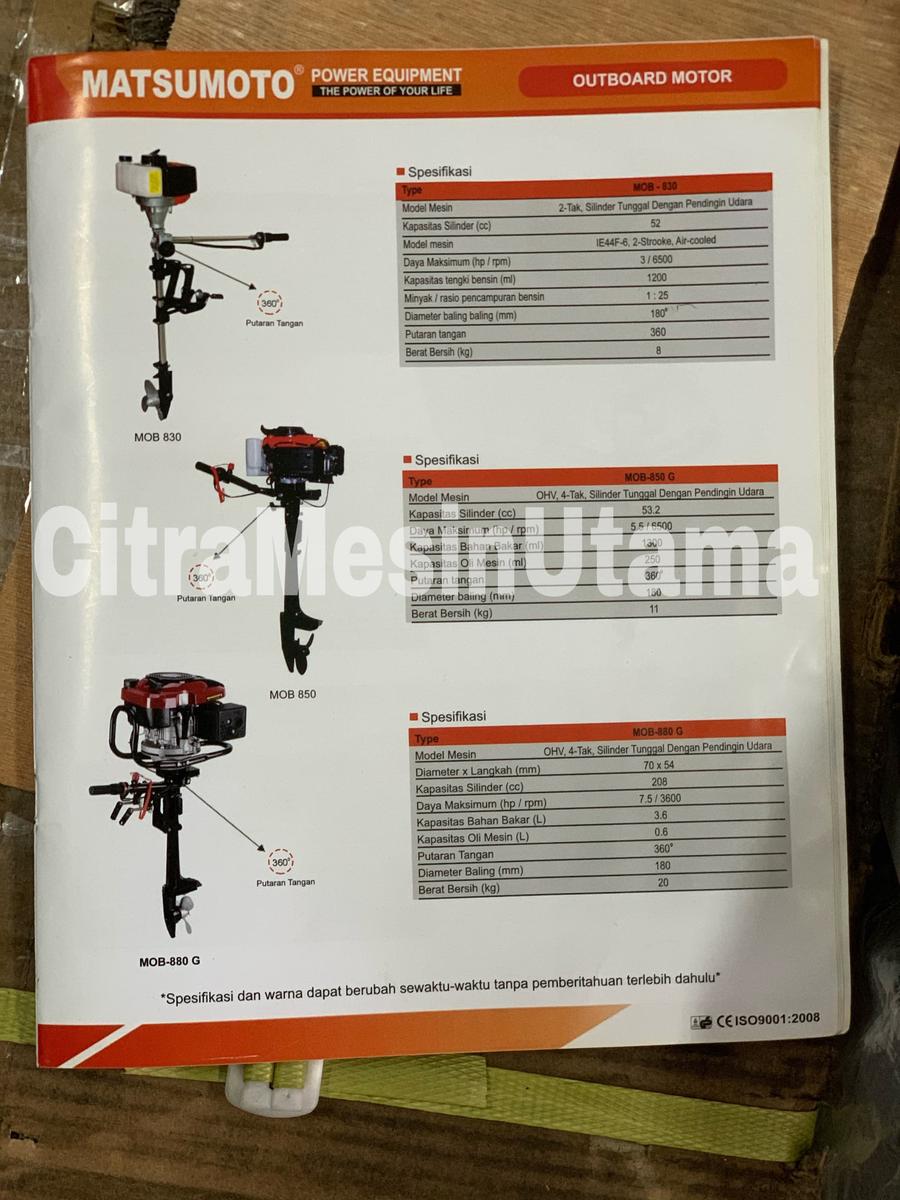 Mesin Perahu / Mesin Tempel / Outboard Motor Matsumoto MOB 850 G