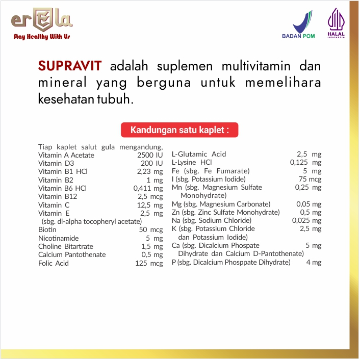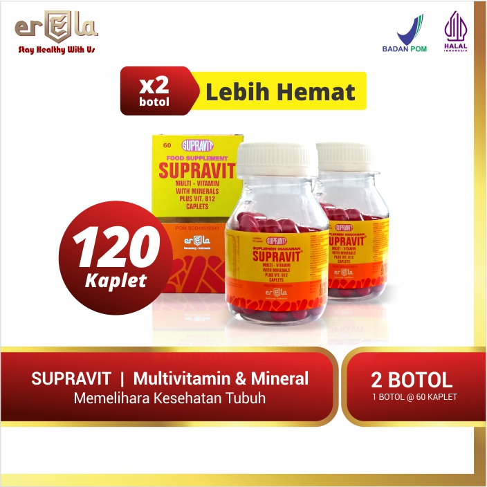 SUPRAVIT / 2 Botol 120 Kaplet / Multivitamin Dewasa / Vitamin A D B C E K Kalsium Magnesium Zinc