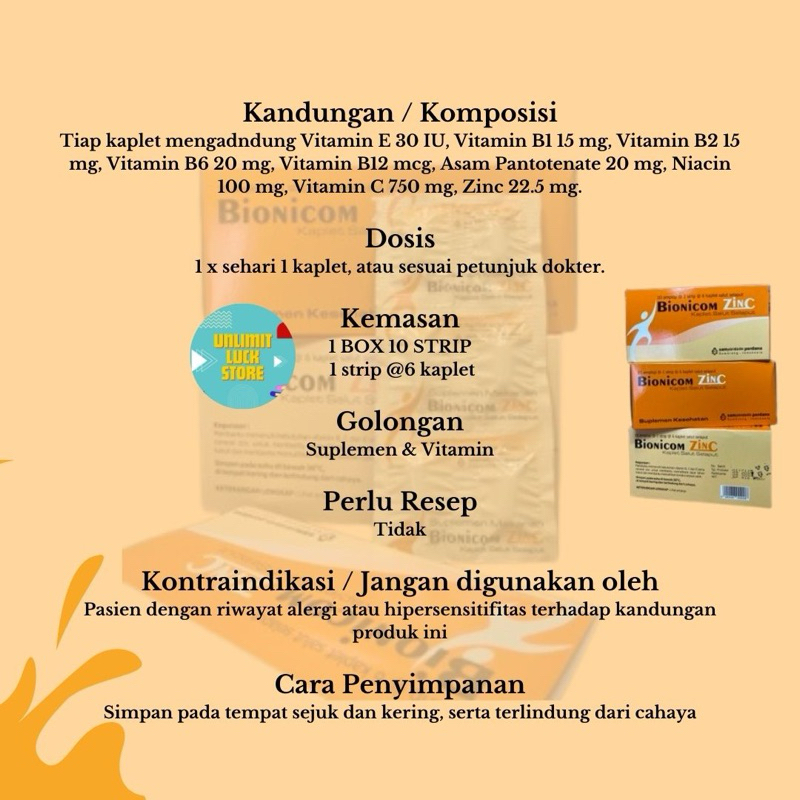 1 Strip 6 Kaplet BIONICOM ZINC Multivitamin Vitamin Murah Original 100%