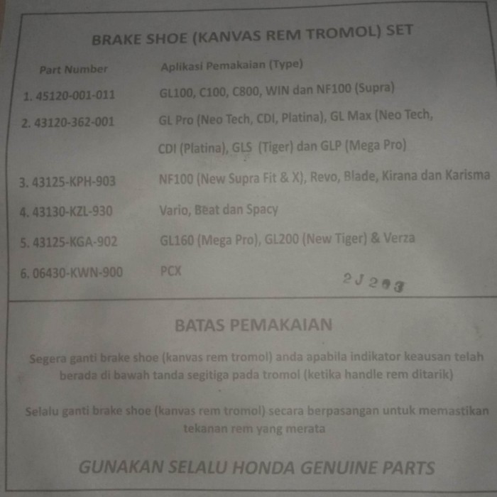 ORI KAMPAS REM BELAKANG HONDA VARIO 125 KAMVAS KAMFAS KANPAS KANFAS
