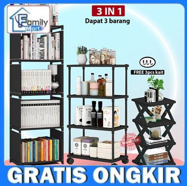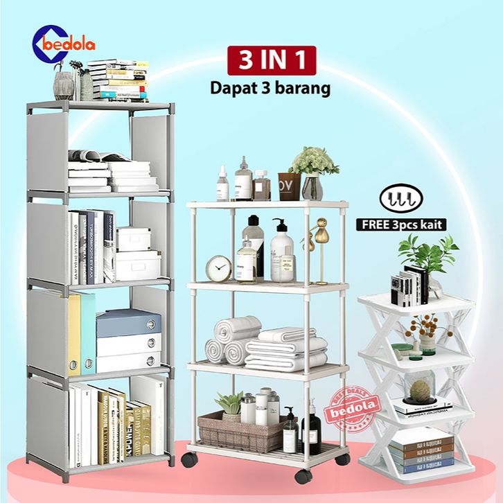 RAK SEPATU SUSUN COMBO 3 IN 1 RAK BUKU 4 SUSUN + KOTAK RAK SERBAGUNA 4 LAYER DENGAN RODA + RAK SEPATU 4 TINGKAT