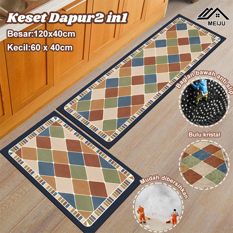 Meiju Keset Dapur 2in1 Ukuran 40cm x 60cm&40cm x 120cm Anti Slip Keset dapur Kitchen Trendy Floor Mat