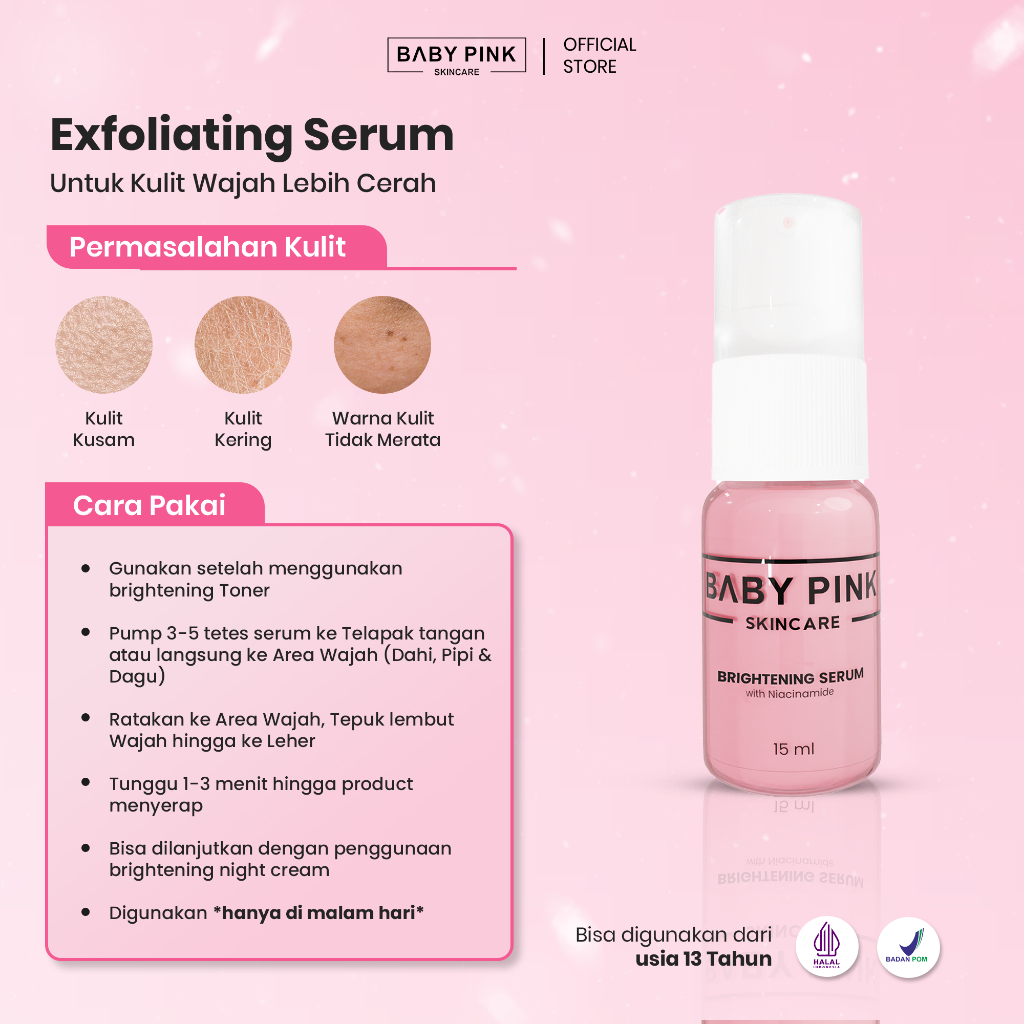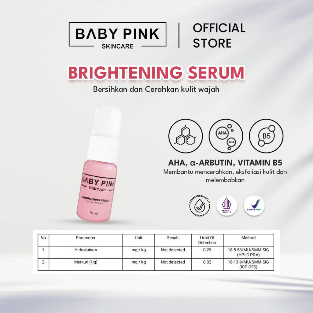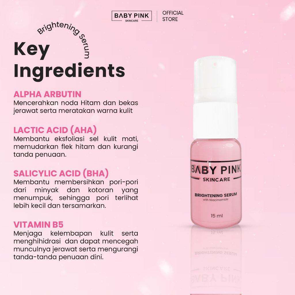 BABY PINK SKINCARE - Brightening Serum dengan Niinamide, AHA, & Vitamin B5 untuk kulit cerah & sehat.