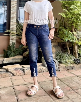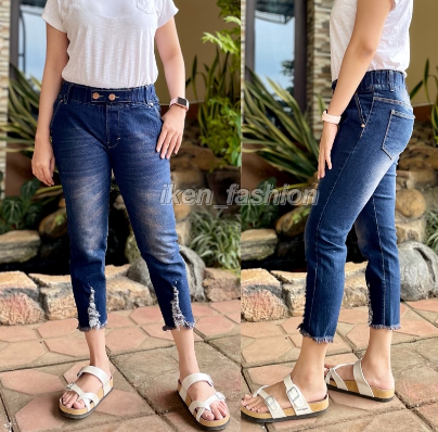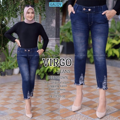 VIRGO JEANS CELANA JEANS 7/9 WANITA RUBBER 2 BUTTON / PINGGANG KARET
