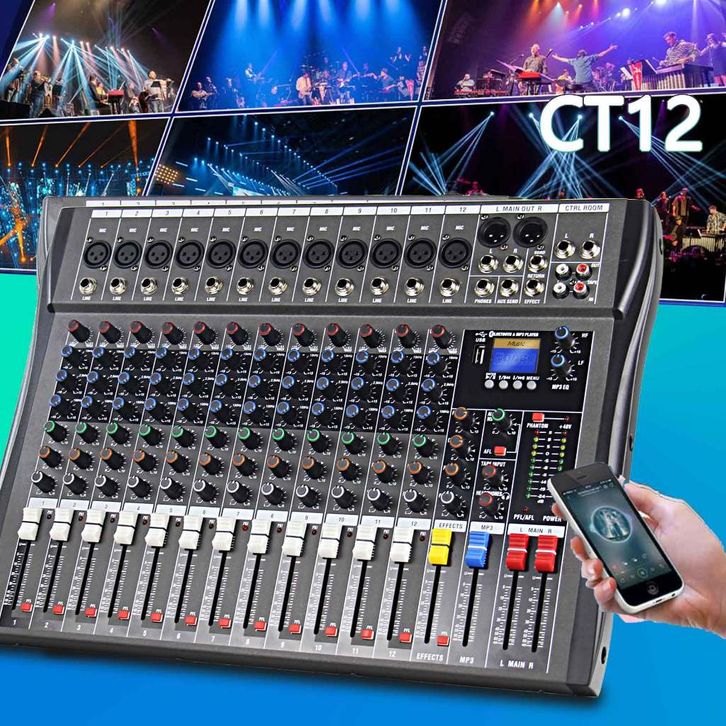 Profesional Mixer Audio 4/7channel Bluetooth/PC/MP3 Mixer Audio with 48V Phantom Power and Bluetooth