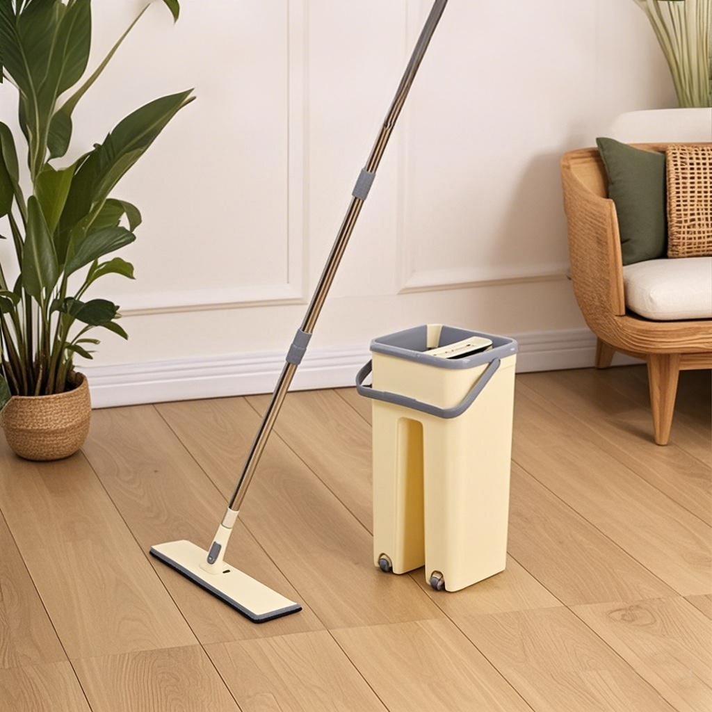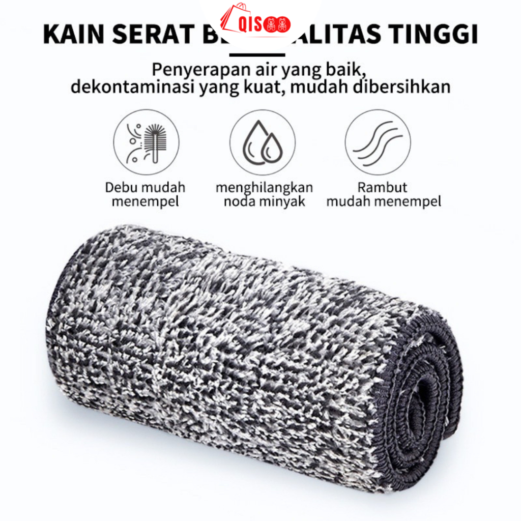 Qisoo Pel Lantai Set Praktis Super Flat Spin Mop Alat Pengepel Lantai Alat Pel Peras Otomatis