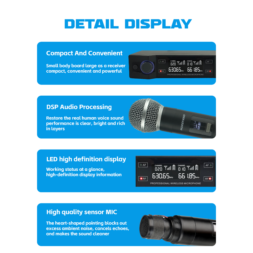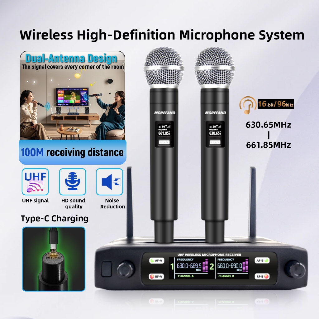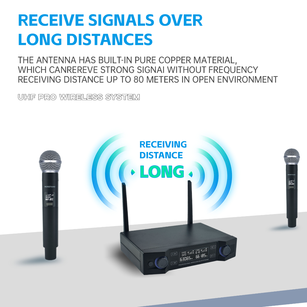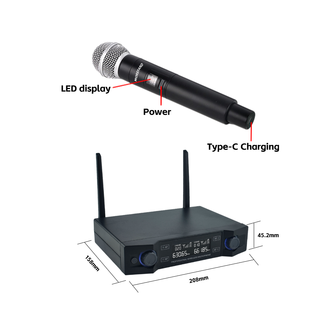 Mikrofon Nirkabel 2mikrofon genggam UHF FM Jarakpenerimaan 80M Peralatan AudioProfesionaloriginal/4002-58V2T,mic karaoke