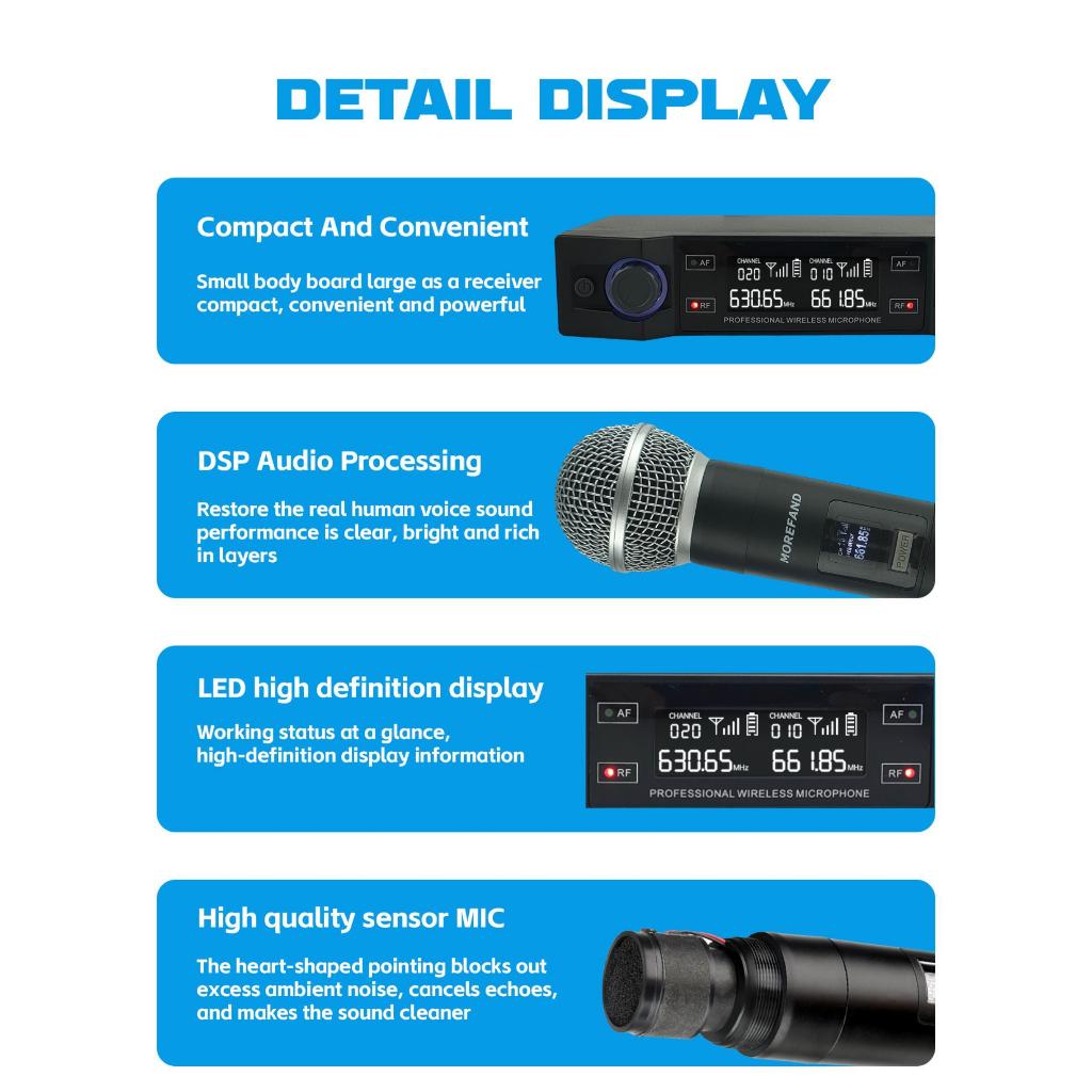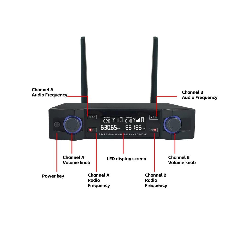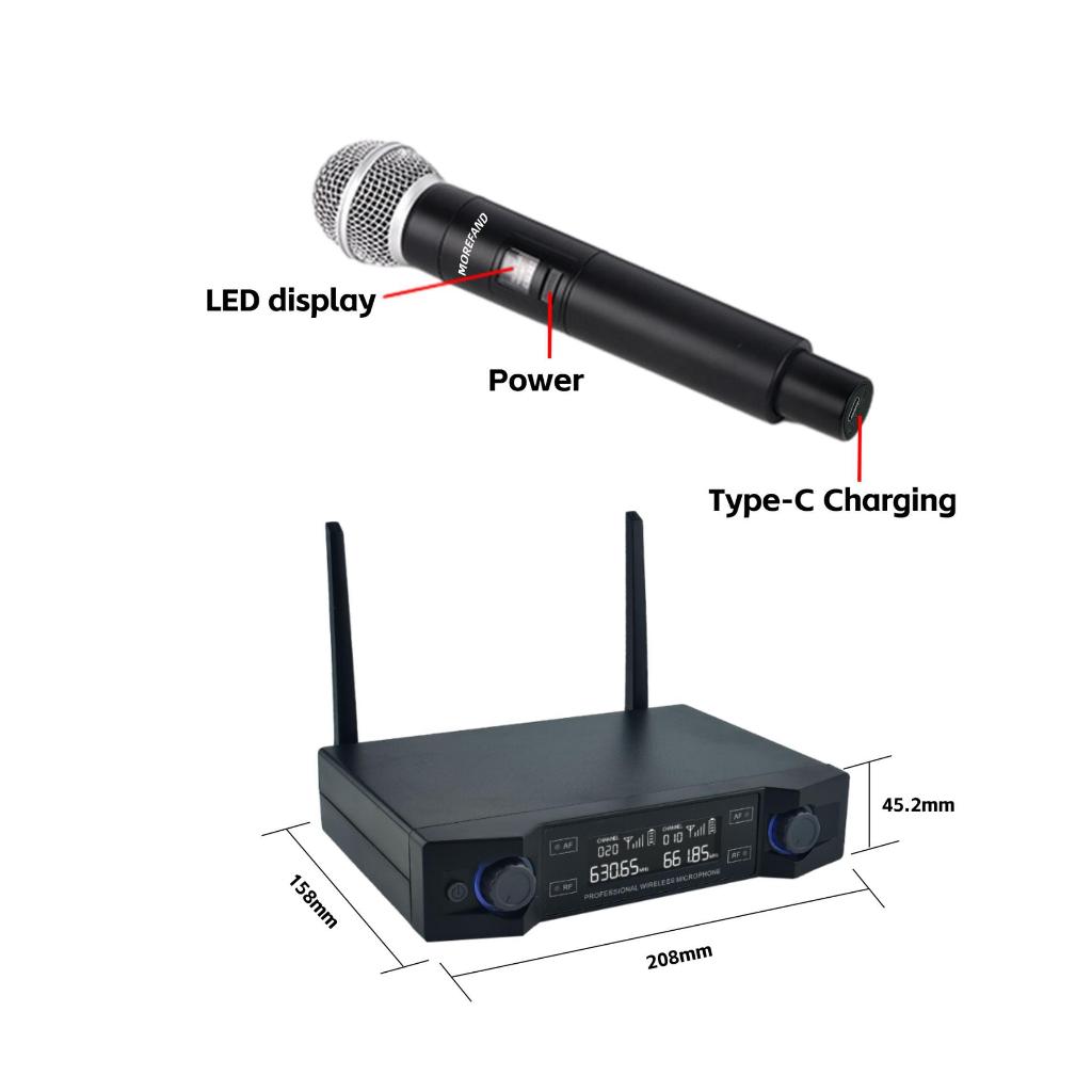 Mikrofon Nirkabel GL4002 2mikrofon genggam UHF FM Jarakpenerimaan 80M Peralatan AudioProfesional