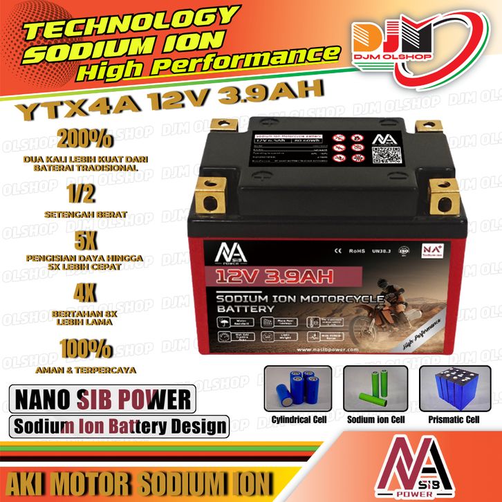 AKI NANO SODIUM ION MOTOR BEAT VARIO 110 BEAT FI MIOSOUL FINO XRIDE XEON VIXION BYSON YTX4A 12V 3.9AH