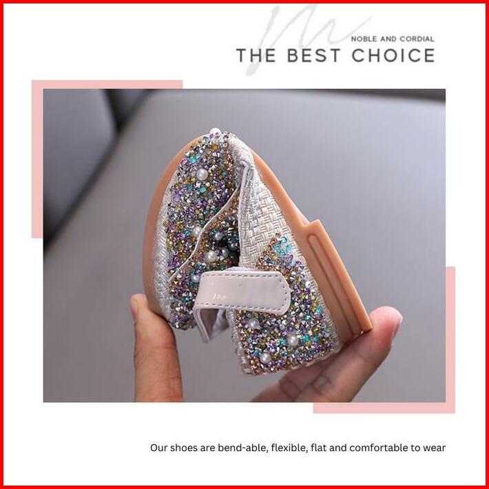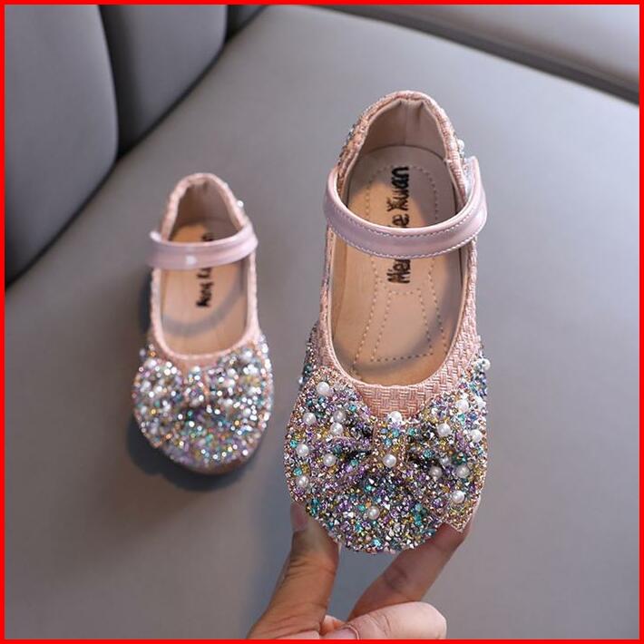 Brandedbaby 21-36 Sepatu Pesta Flat Anak Perempuan Premium Manik-manik Mutiara Pita Hitam Pink Ivory Fashion Korea Anti