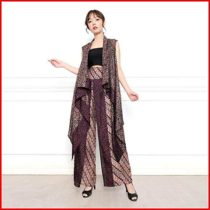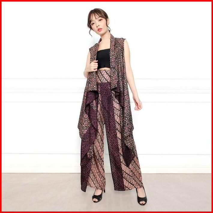 Batik Set Matari Kaftan Set Batik Viscose Setelan Batik Viscose Baju Outer Celana Wanita
