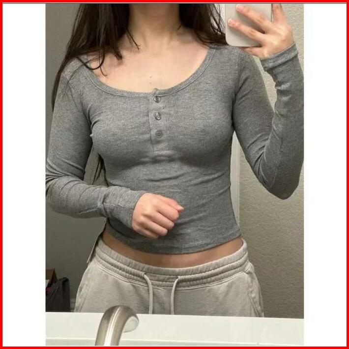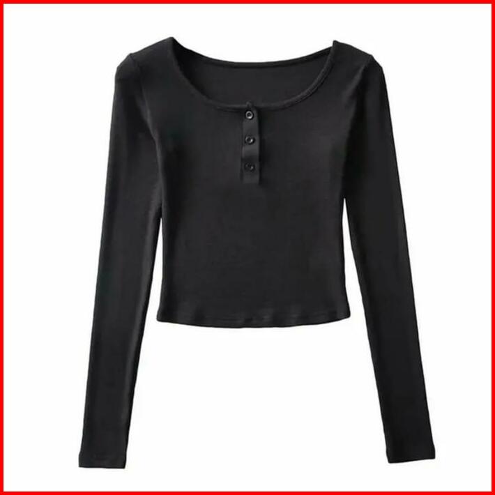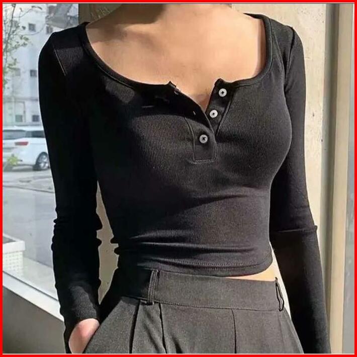 Blouse Korean Scop Crop Button Top Knit Premium Lengan Panjang Wanita Korean Style