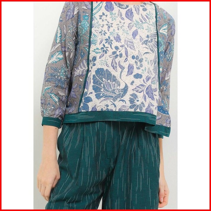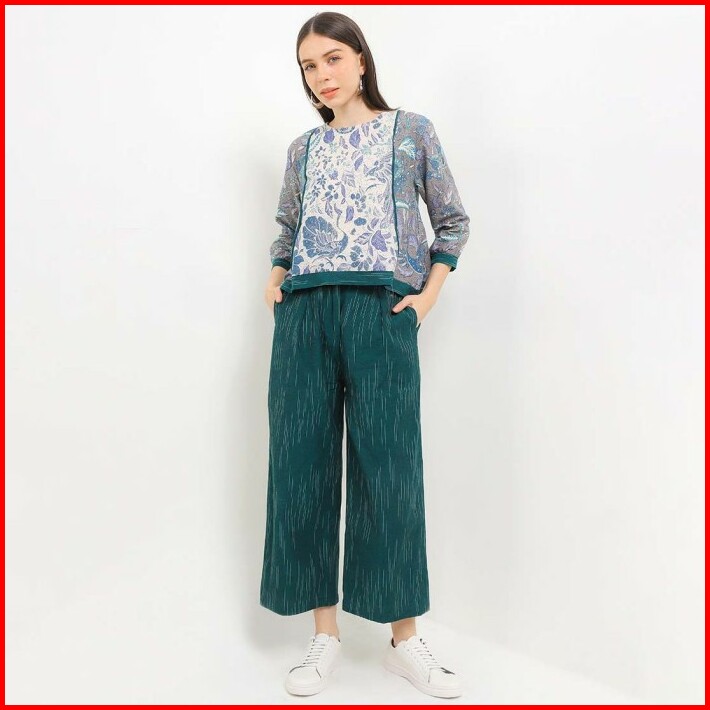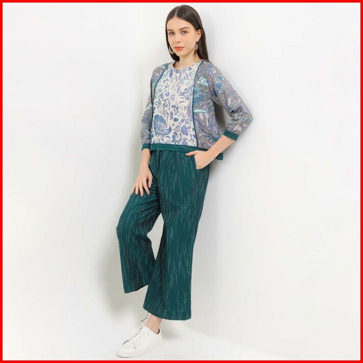 Rianty Batik Premium Wanita Setelan Set Atasan Blouse Bawahan Celana Noelita Grey