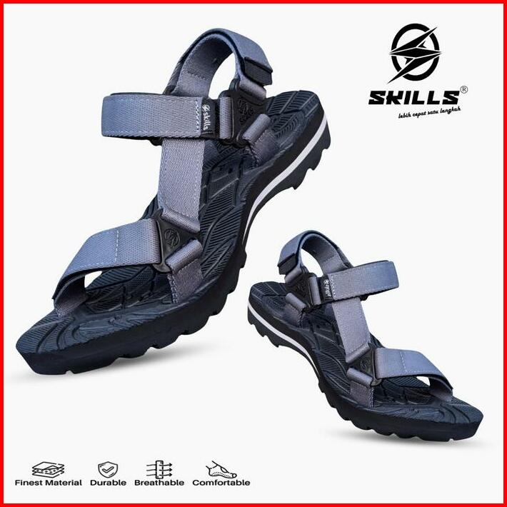 Skills Sandal Gunung Pria Wanita Light Grey Original Sendal