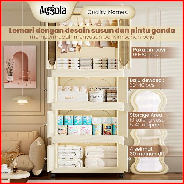 Angola Lemari Pakaian Anak Lipat Susun Minimalis C87-c88 Lemari Baju Anak Plastik Lemari Serbaguna Furniture Pintu