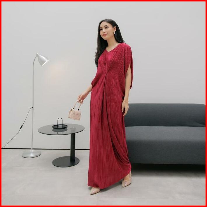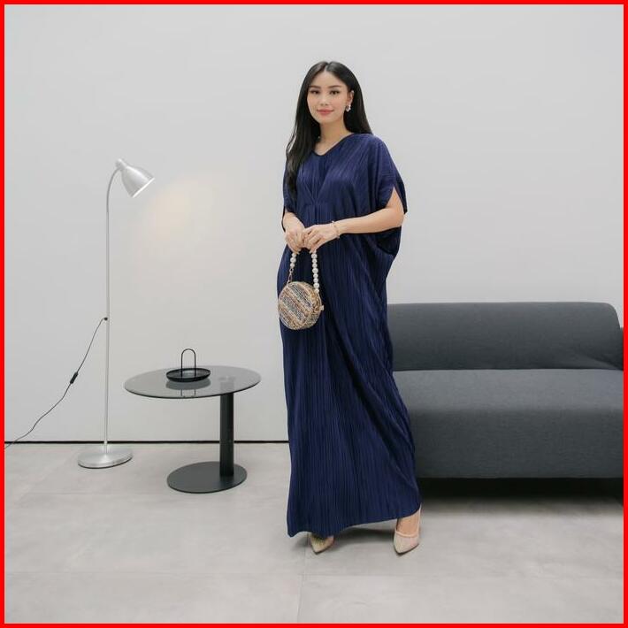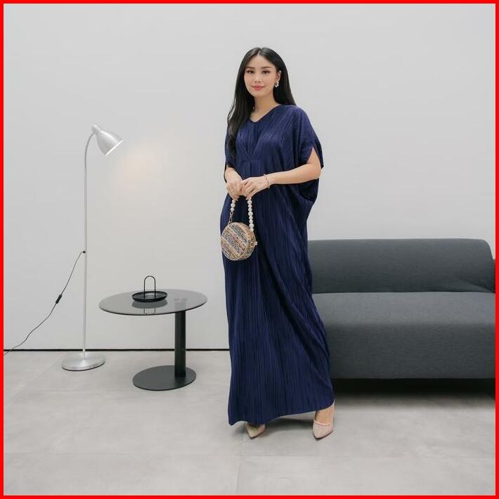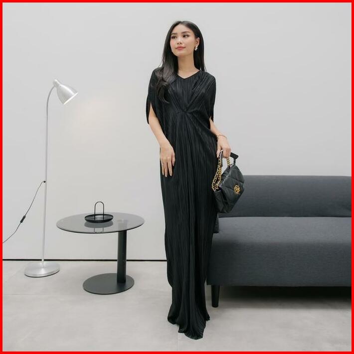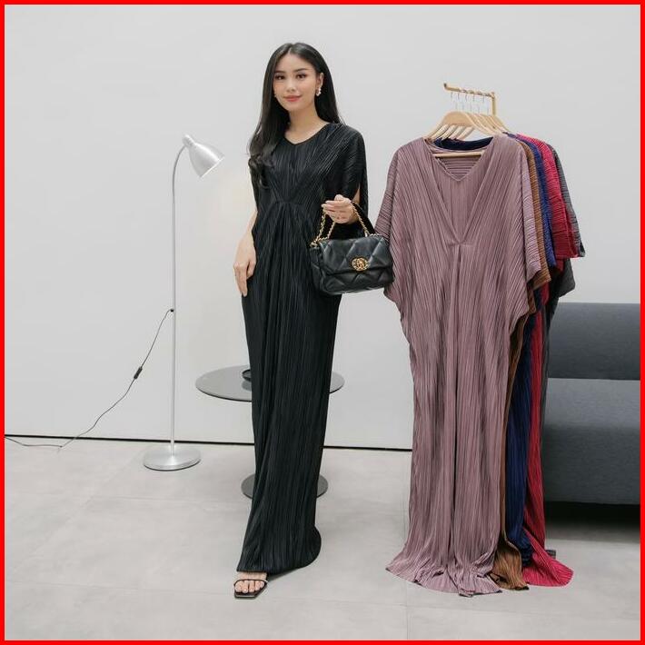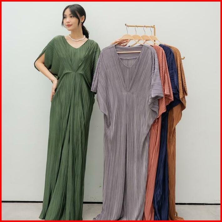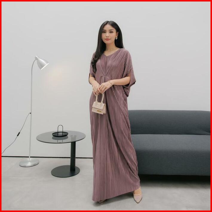 Inara Dress Kaftan Silky Pleats Plain Muslim Panjang Wanita Gamis Rayon