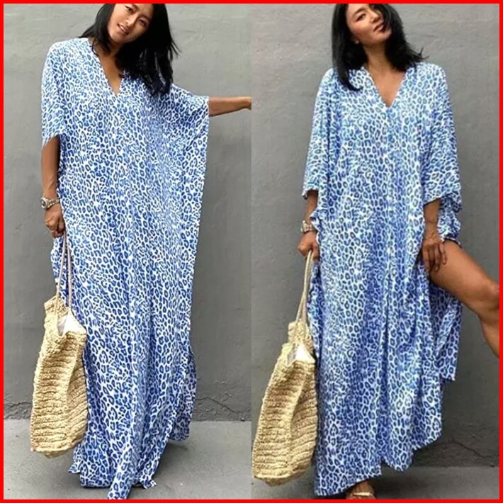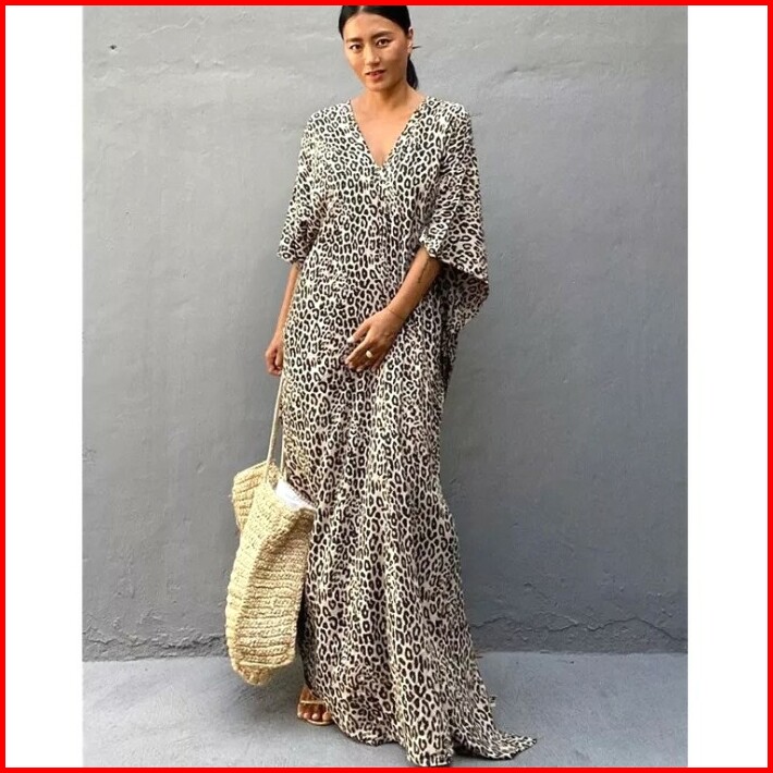 Dress Pantai Bali Leopard Tutul Macan Long Kaftan Gamis Maxi Bigsize
