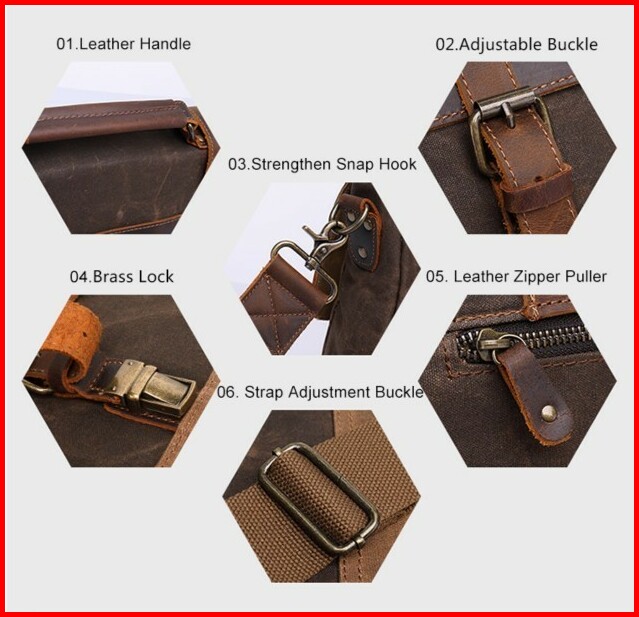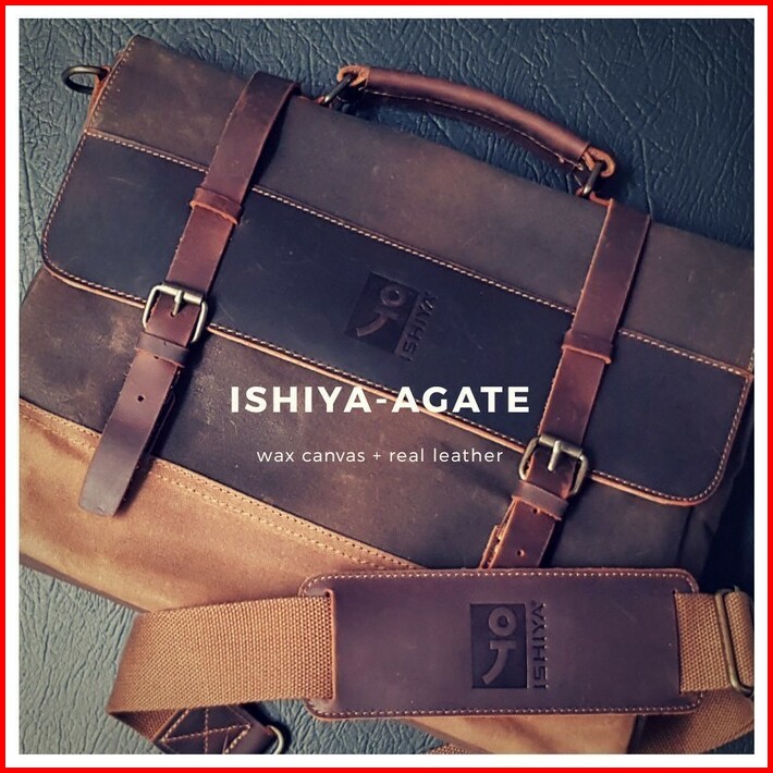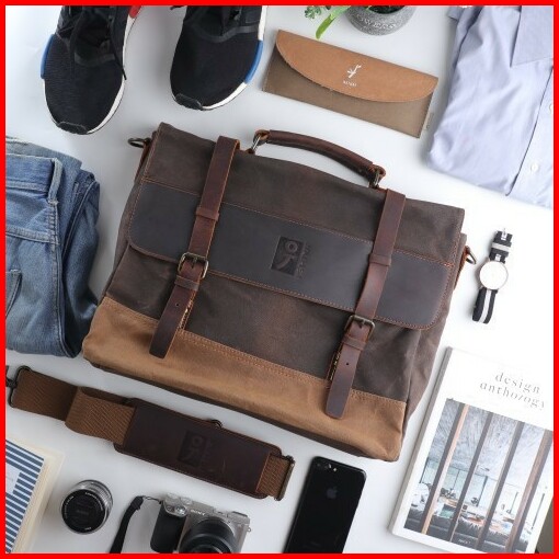 Tas Kerja Tas Kantor Laptop Pria Wax Canvas Kulit Asli -ishiya Agate-