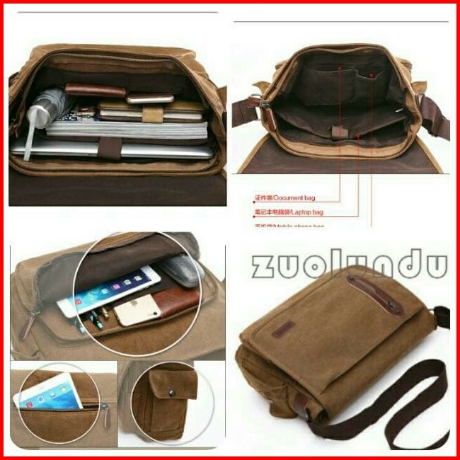 Tas Selempang Kanvas Laptop Kerja Pundak Bahu Pria Wanita 9091