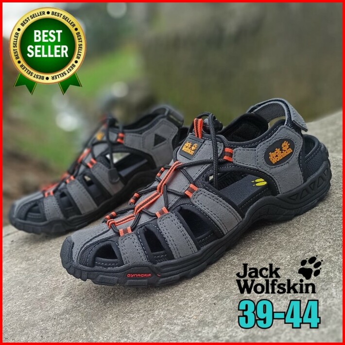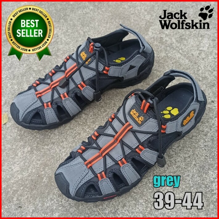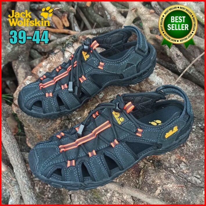 Sepatu Sandal Gunung Jack Wolfskin Adventure Sendal Hiking Bahan Kulit
