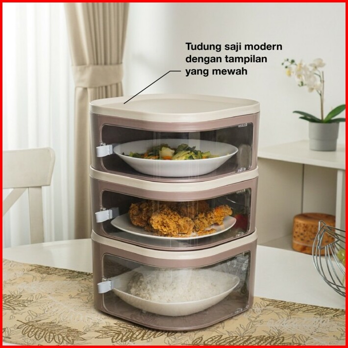 Tudung Saji Technoplast Dishes Keeper Set 3 Tingkat Lebih Kokoh
