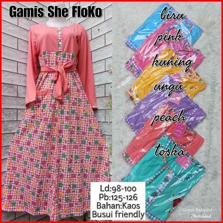 Daster Gamis She Standar Ld 100 Cm Bahan Kaos Kancing Atas Aktif