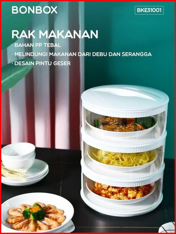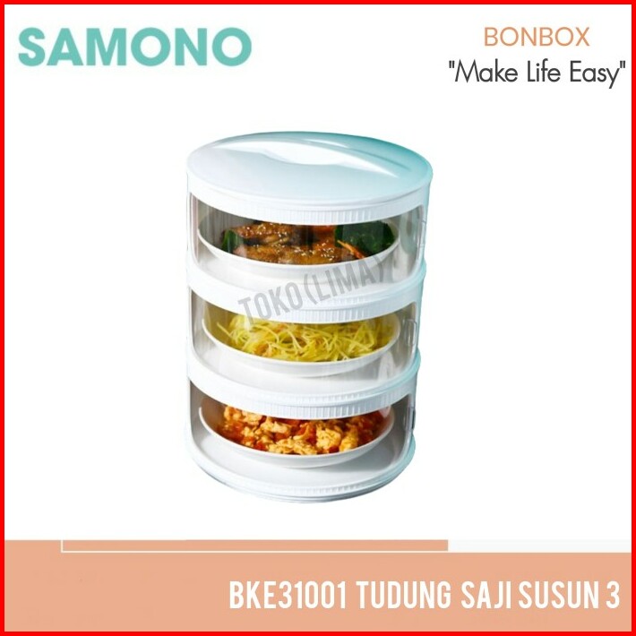 Tudung Saji Susun 3 Bonbox Samono Bke31001 Rak Makanan Tingkat 3 Wadah Makanan Food Storage Transparan