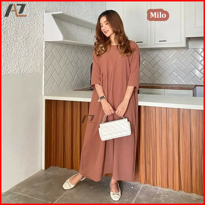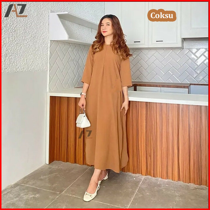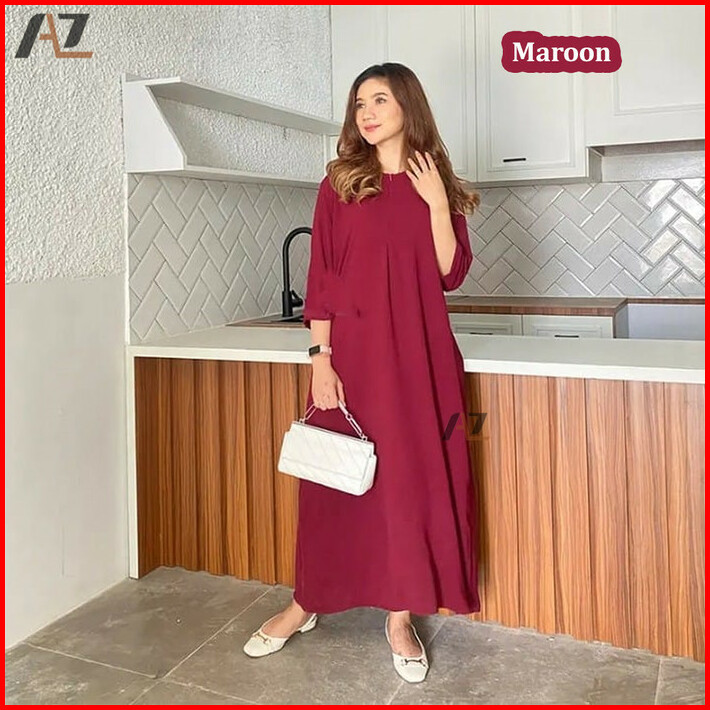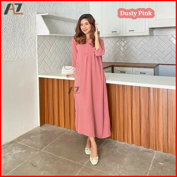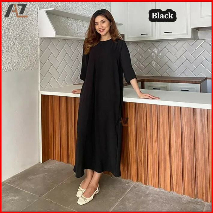 Daster Gamis Wanita Modern Busui Resleting Crinkle Panjang Polos Jumbo