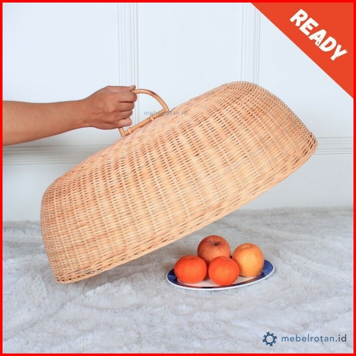 Tudung Saji Oval Anyaman Rotan Alami Tutup Makanan Food Cover