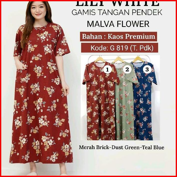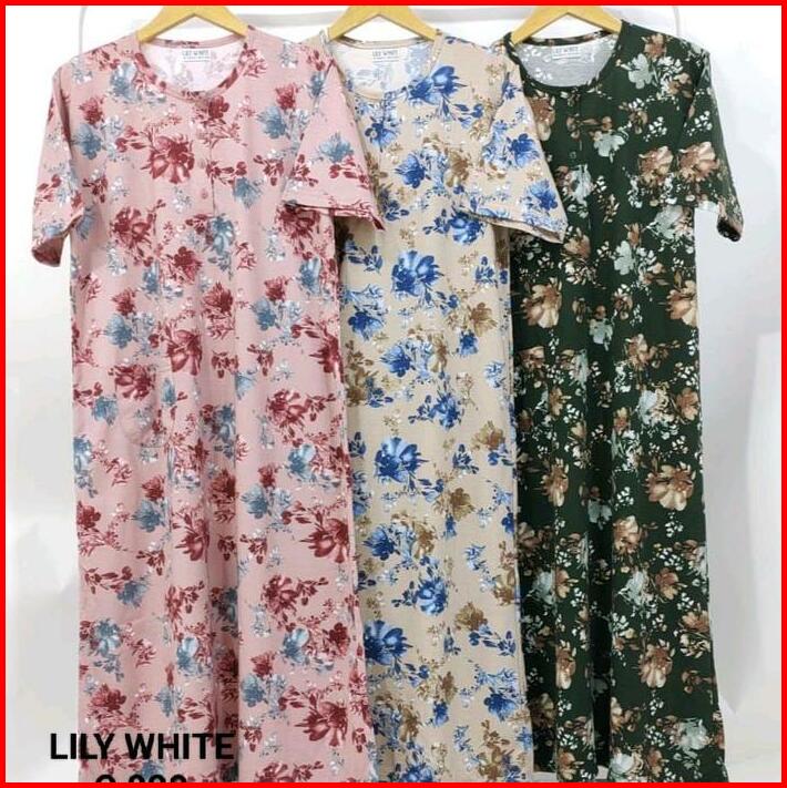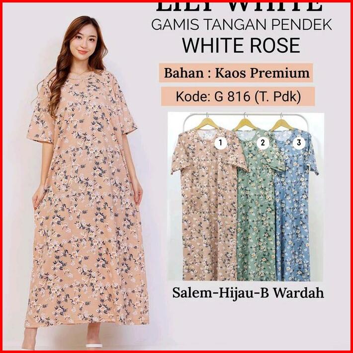 Daster Atau Gamis Lengan Pendek Lily White Dress Panjang Kaos