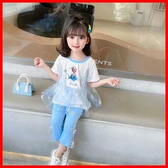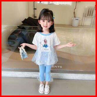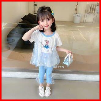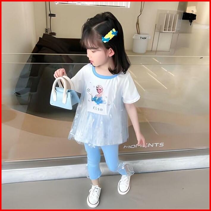 Princess Kesli 1-8 Tahun Setelan Elsa Frozen Legging Anak Perempuan Baju Karakter Oneset Lucu Nyaman Katun Kids Bayi Par