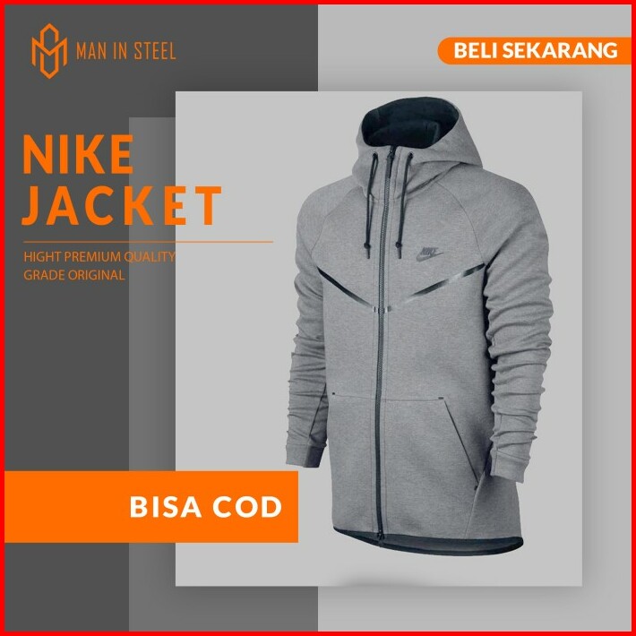 Jaket Hoodie Running Olahraga Cowok Pria Nike V Tech Grey Grade Ori