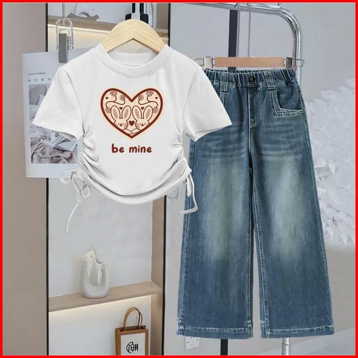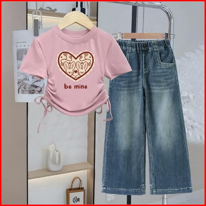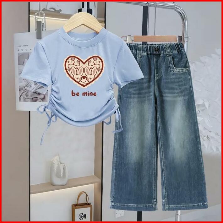 Baju Setelan Anak Perempuan Model Serut Celana Kulot Jeans Usai 1