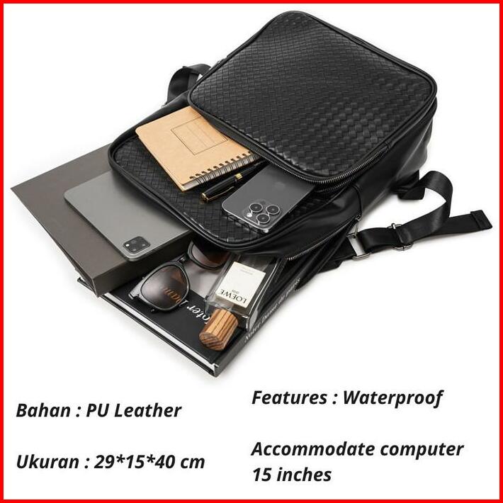 Tas Ransel Pria Waterproof Backpack Tas Laptop Kerja Kulit Pu Leather T 0008 Lb