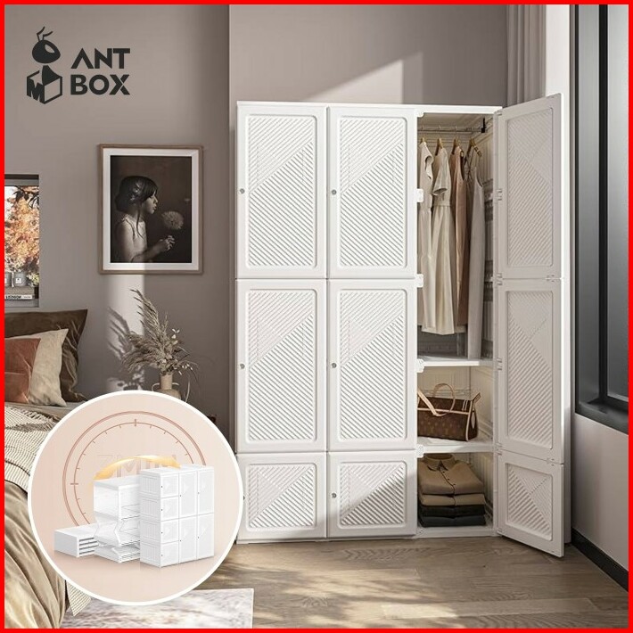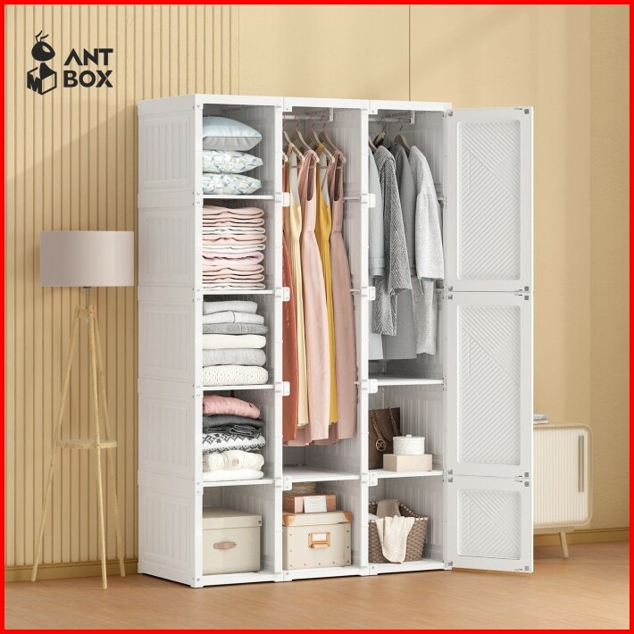 Antbox Lemari Pakaian Putih Susun Plastik Minimalis Lemari Baju