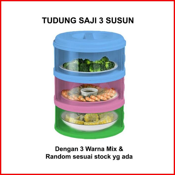 Wadah Makan Tudung Saji 3 Susun Warna Mix Food Storage Rak Penyimpanan Makanan 3 Tingkat Tudung Saji Tutup