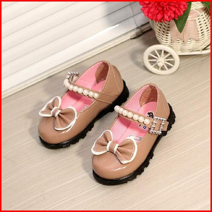 Sepatu Loafer Anak Perempuan Dokmart Pita Mutiara Musim Panas Fashion Tanpa Hak