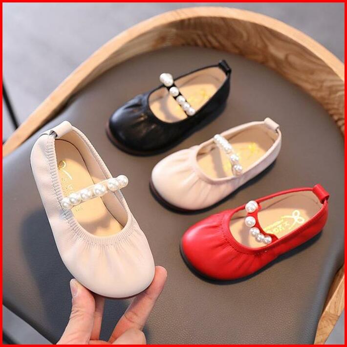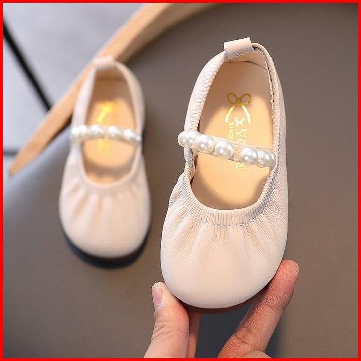 Elegan Mutiara Sepatu Gadis Datar Kulit Lembut Anti Selip Semua Pertandingan Elastis Sepatu Putri Anak Perempuan Fashion