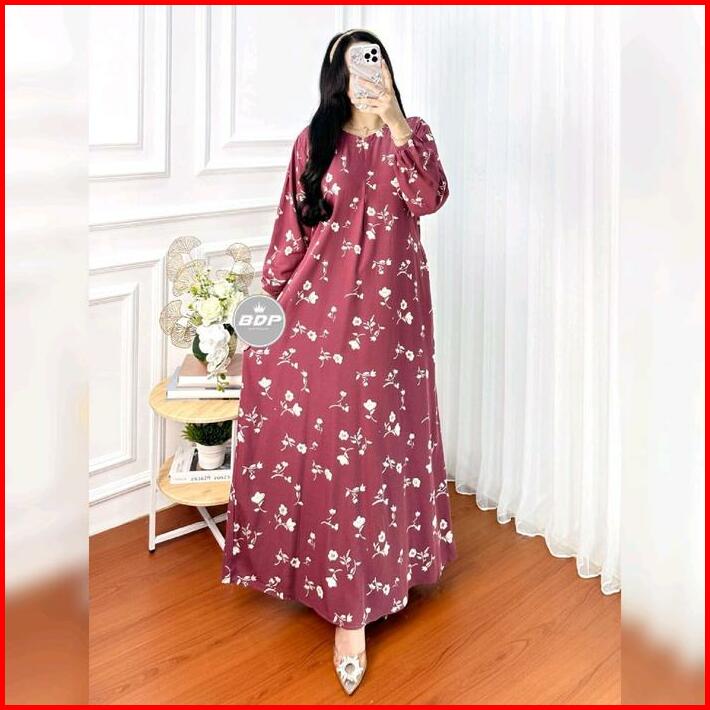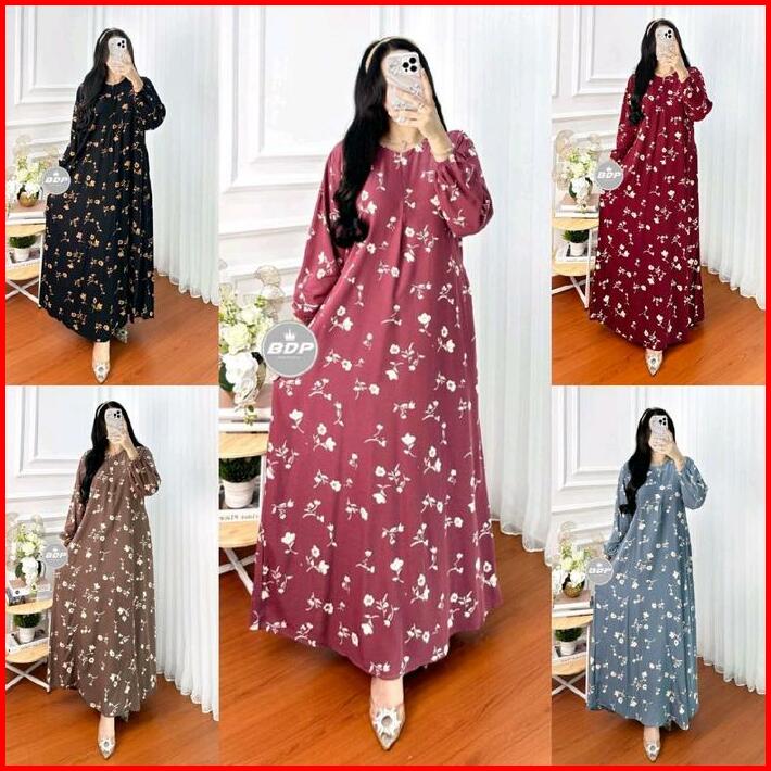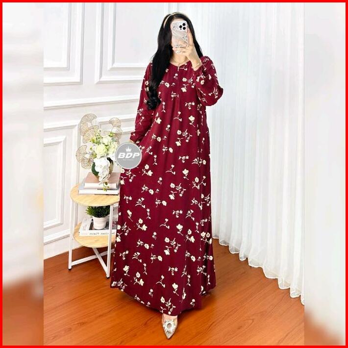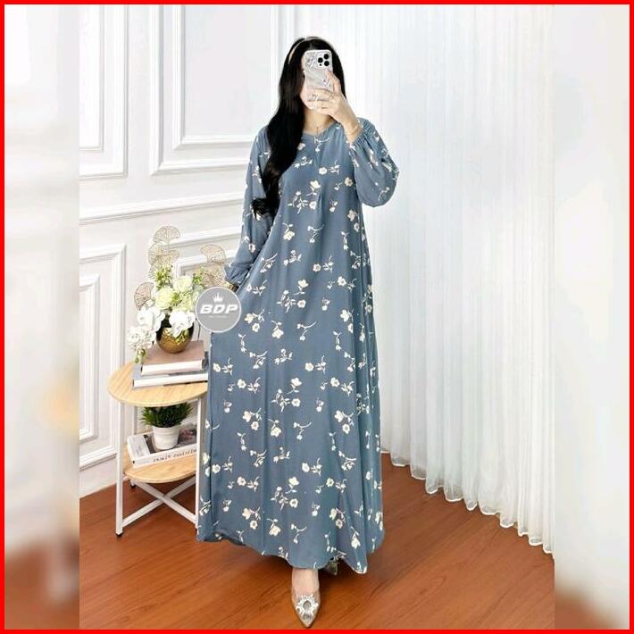 Daster Gamis Lengan Panjang Motif Kekinian Rayon Tebal Halus Santung Premium Resleting Depan Terbaru