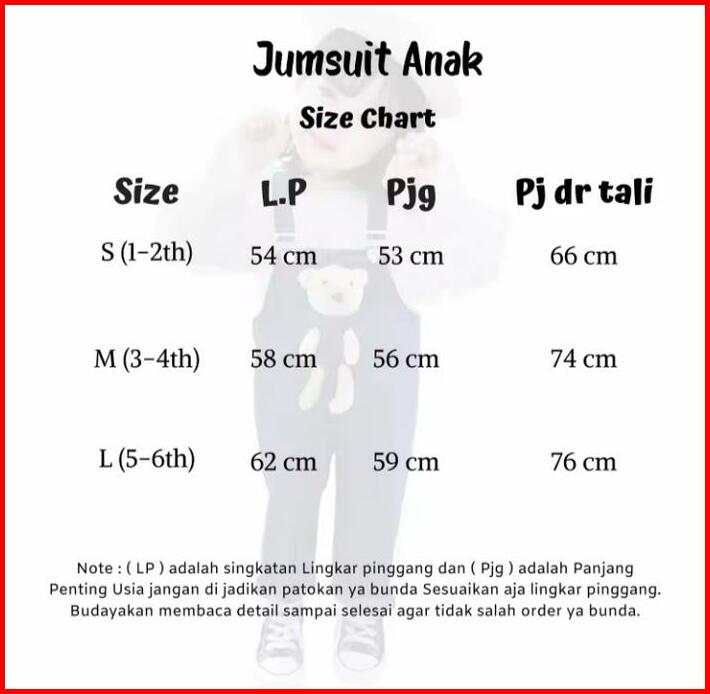 SIZE : S = 1-2 TAHUN, SIZE : M = 3-4 TAHUN, SIZE : L = 5-6 TAHUN