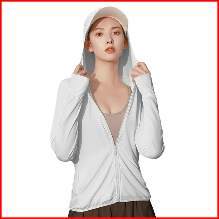 Jaket Olahraga Wanita Lengan Panjang Berkerudung Mantel Upf 50 Anti