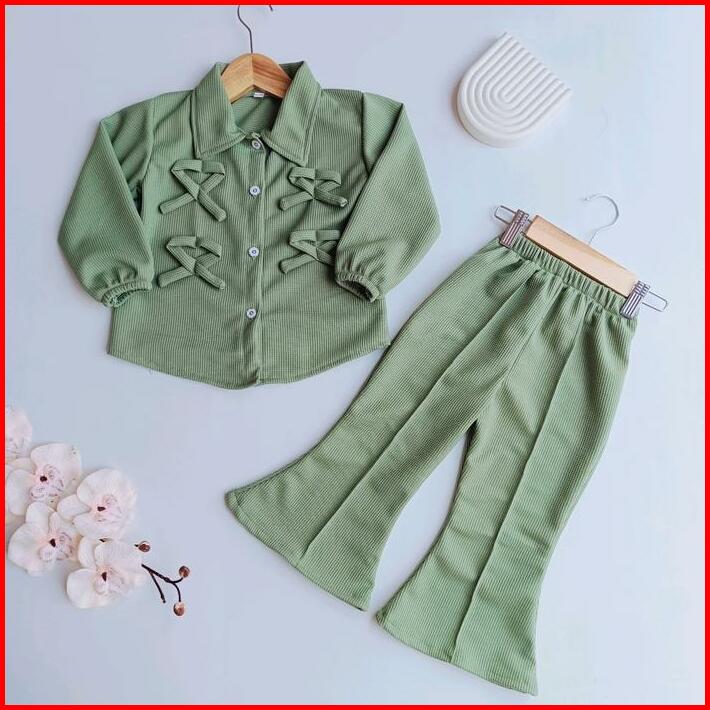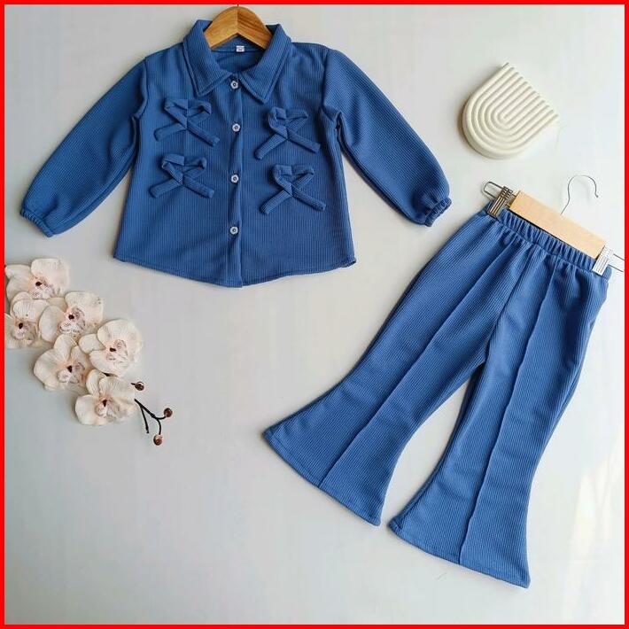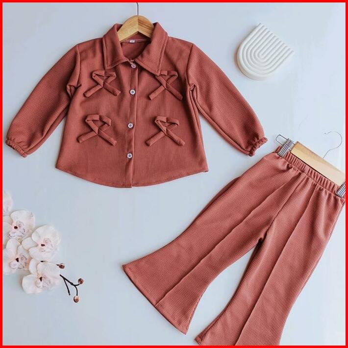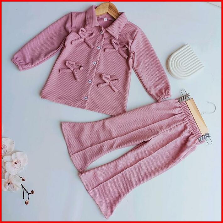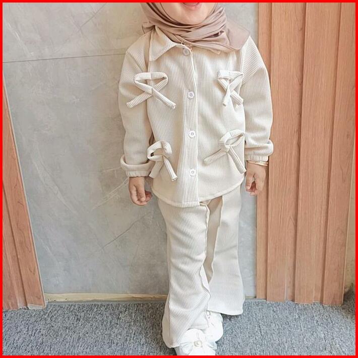Setelan Anak Perempuan Model Terbaru Bahan Waffle Knit Outfit Anak Cewek Modis Cantik